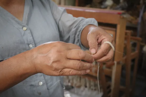 桃源村の澄んだ山の空気のなかに、今日も織機のやわらかな音が溶け込んでいく。
